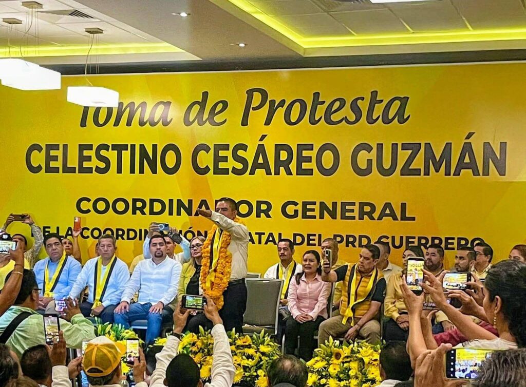 Militantes y simpatizantes se reunieron ayer en Chilpancingo para conmemorar el aniversario del instituto político, en un acto donde también rindió protesta como nuevo dirigente Celestino Cesáreo Guzmán, en sustitución del ex alcalde de Acapulco Evodio Velázquez Aguirre.